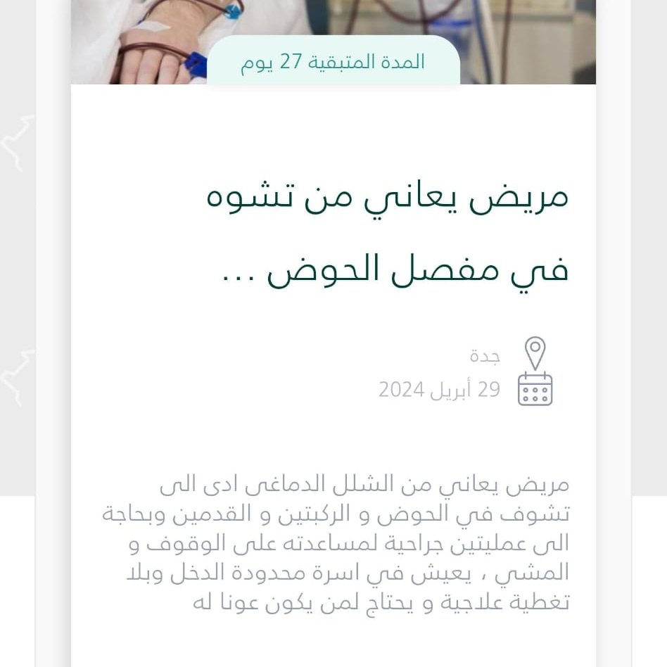 نبي نتشارك الاجر في هذه الحاله العاجلة جدًا ولا تحتمل البقاء اكثر، نحن ملاذة الوحيد بعد الله.