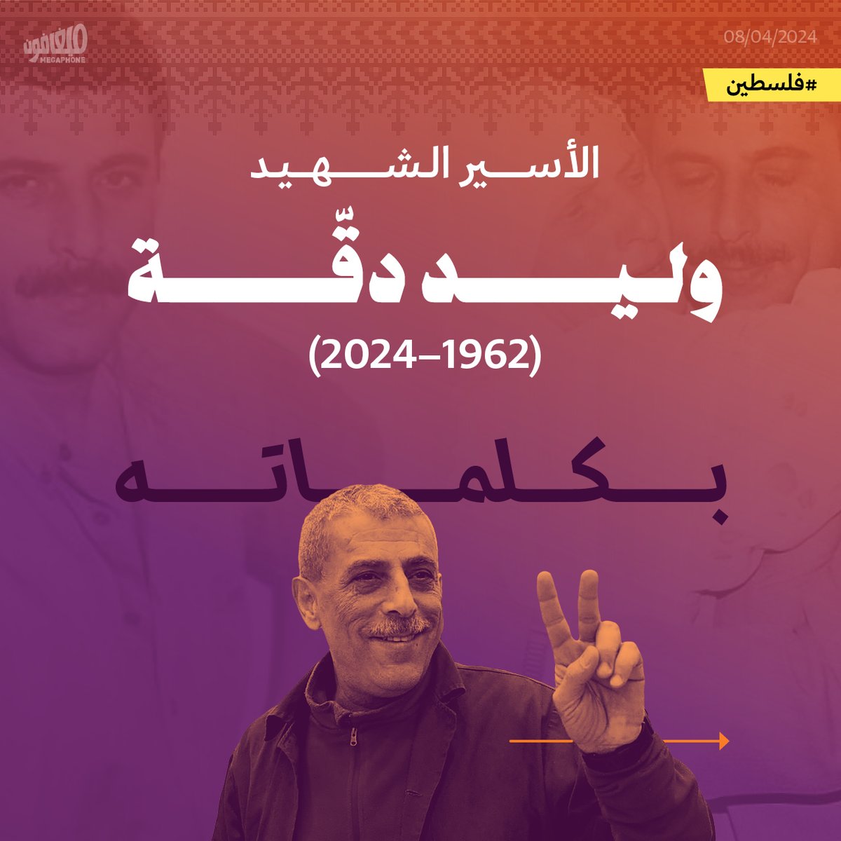 دقّة، مواليد 1962، هو سادس أقدم أسير فلسطيني. اعتُقل عام 1986، وانتزع من السجّان عرساً في العام 1999، مع الناشطة والصحافية #سناء_سلامة. ثم تمكّن عام 2019 من تهريب نطفةٍ من زنزانته، ورزق ببنته: «ميلاد»، كما كان اسمه الحركي. عانى دقّة من السرطان ومن إهماله طبّياً، إلى أن استشهد أمس بعمر الـ62، أمضى 38 منها في السجن.