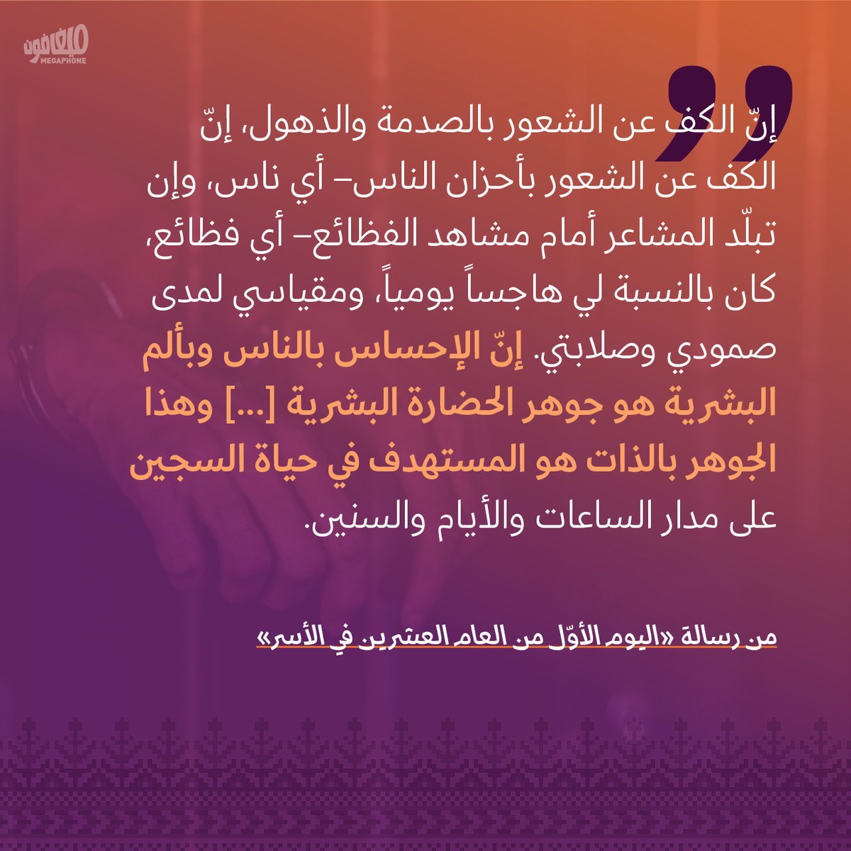 بين صفاتٍ كثيرة، كان الأسير #وليد_دقة كاتباً. «كنت أكتب لأتحرّر من السجن، على أمل أن أحرّره منّي»، وبقيَ على هذه العادة، إلى أن استشهد، أمس الأحد. «رجل الكهف»، كما سمّى نفسه، الساكن في زمنٍ موازٍ، تمكّن مع ذلك من إصدار عددٍ من المنشورات والرسائل، بينها «حكاية سرّ الزيت» و«حكاية سرّ السيف»، و«صهر الوعي: أو في إعادة تعريف التعذيب»، و«يوميات #المقاومة في #جنين».