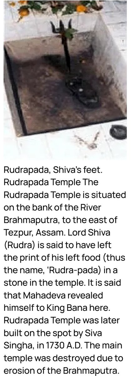 🔱तेजपुर- असम के तेजपुर में ब्रह्मपुत्र नदी के पास स्थित रुद्रपद मंदिर में शिव के दाएं पैर का निशान है।
