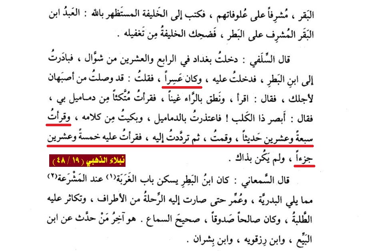 8/ والخلاصة أن رواية السلفي للصحيح غير ثابتة لا حديثيًّا ولا تاريخيًّا: فإنه لم يرو من أحاديث البخاري بالإسناد المذكور إلا حديثًا واحدًا بإقراره، والبخاري لم يحدِّث بصحيحه إلا بعد خروجه من العراق. والتفصيل التاريخي مذكور في كتابي الذي سيصدر قريبًا إن شاء الله.