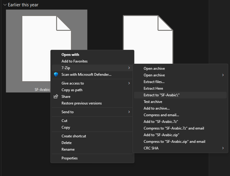 Right click > 7zip > Extract to "SF XXX\"