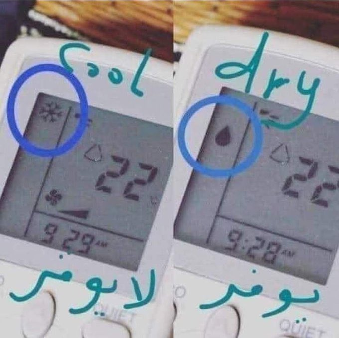 إذا حاب توفر فاتورة الكهرباء و تحسن من اداء المكيف، لازم تشغل التكييف في وظيفة dry mode عشان تقدر تتخلص من الرطوبة اولا