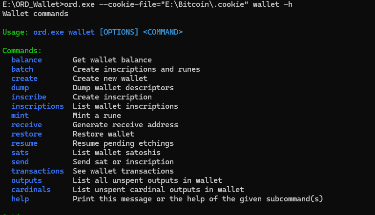 ord.exe --cookie-file="E:\Bitcoin\.cookie" wallet create