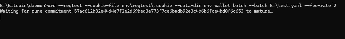 ord.exe --regtest --cookie-file env\regtest\.cookie --data-dir env wallet batch --batch E:\Bitcoin\daemon\batch.yaml --fee-rate 2