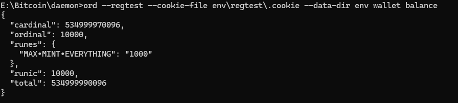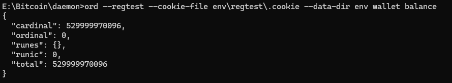 ord.exe --cookie-file E:\Bitcoin\daemon\env\regtest\.cookie --data-dir env wallet balance