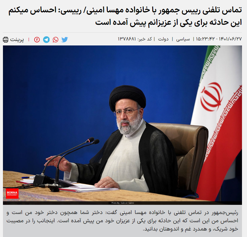 تماس تلفنی رییس جمهور با خانواده مهسا امینی/ رییسی: احساس میکنم این حادثه برای یکی از عزیزانم پیش آمده است
