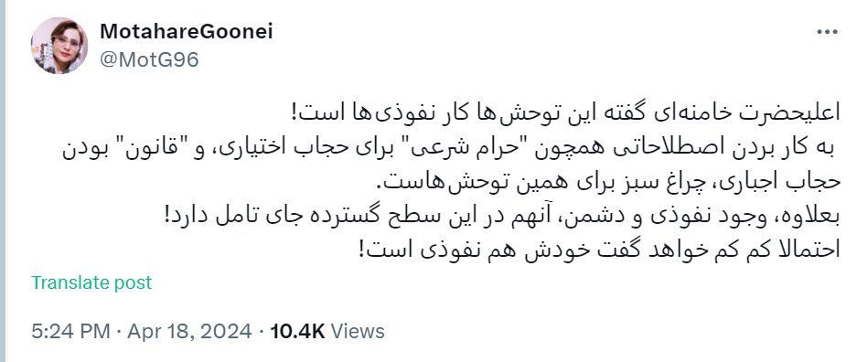 6/11. ج) 24 فروردین ماه 1401، مجدداً اکانتهای معظمله در فضای مجازی، اقدام به تحریف ایشان نمودند و البته بعد از مدتی، توییت را پاک کردند: