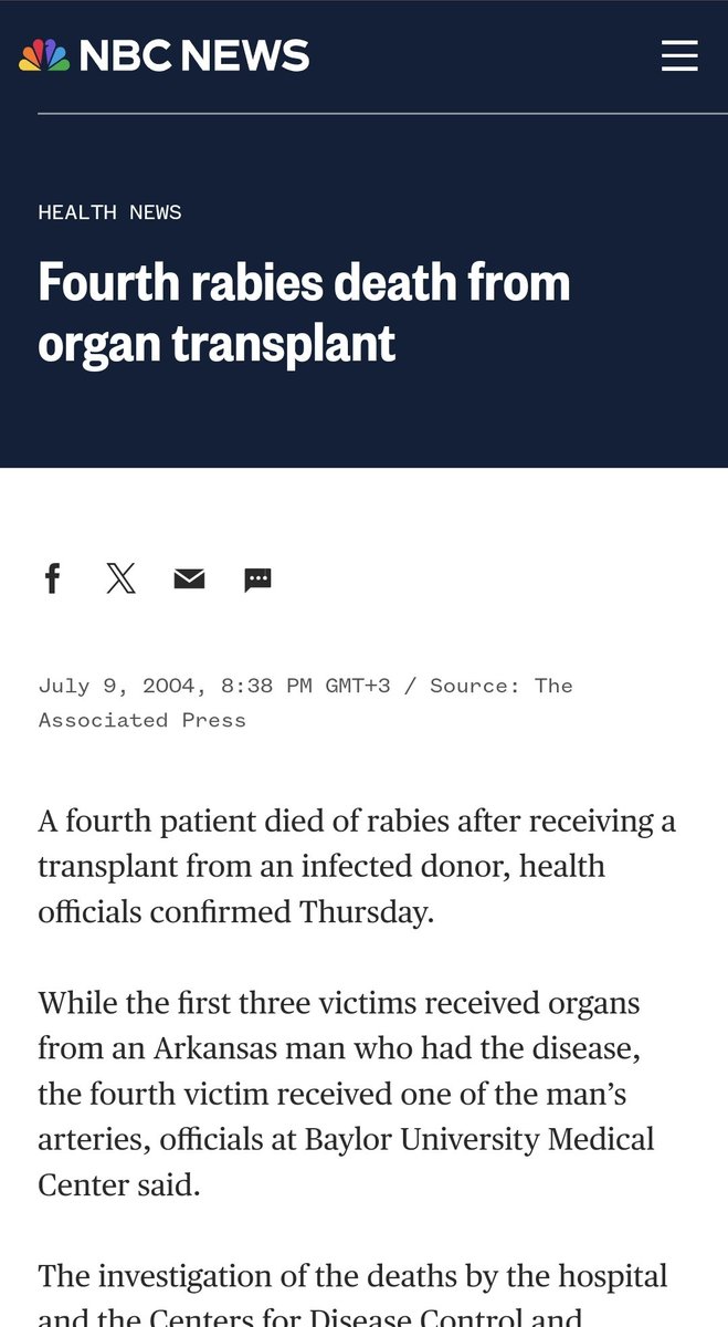 لم يخطر ببال الجراحين فحص الأعضاء من داء الكلب لأنه امر غير شائع وبسبب تكلفته الباهظة، لاحقا تم إعطاء 29 شخصا من افراد عائلة الضحايا و61 فردا من الطاقم الطبي جرعات تحصينيه ضد الداء.