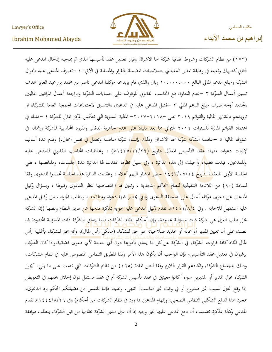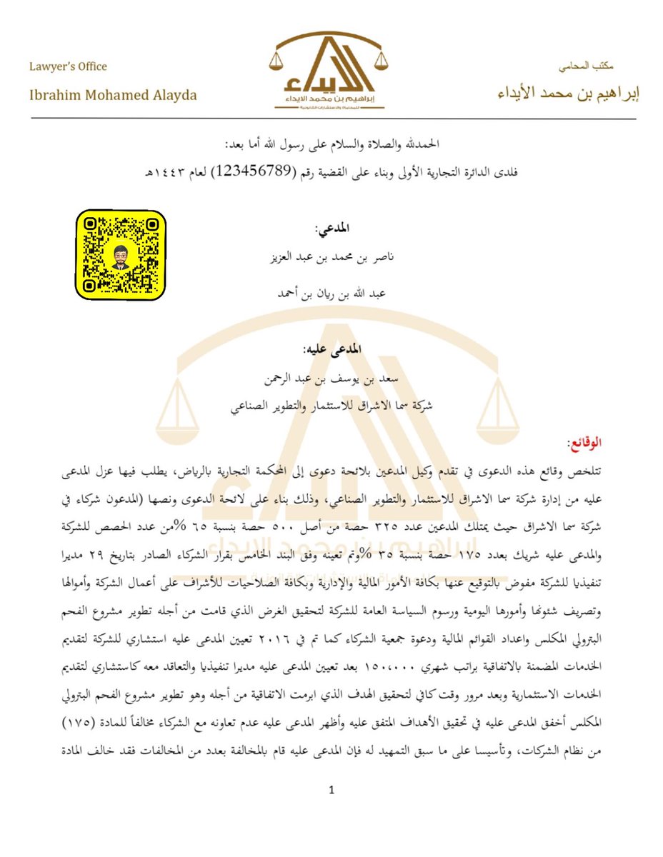 📌المطلوب كتابة مذكرة رد على قضية واحده جنائية او لائحة اعتراضية في القضية التجارية.