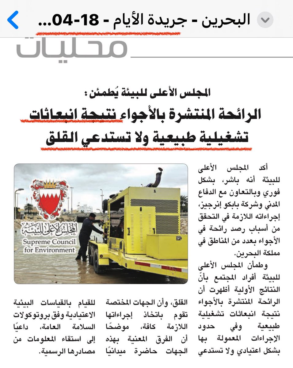 3️⃣ في صحف السبت والاحد تختفي اخبار التسرب/الرائحة، لا وجود لتصريح رسمي او تحقيق صحفي، او استقصاء لاراء المواطنين، رغم ان شكاوى الناس خاصة في قرية المعامير تتزايد!!