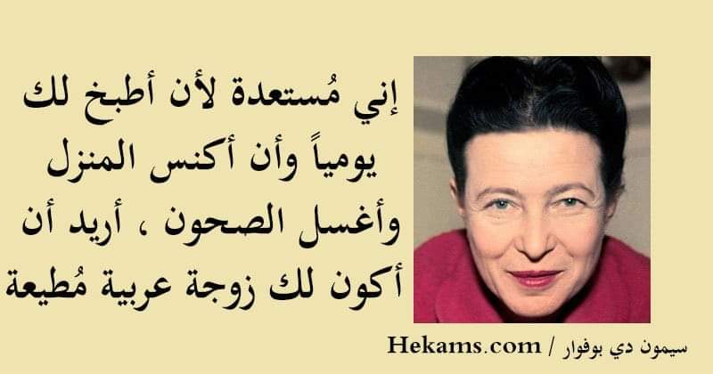 "إني مستعدة لأن أطبخ لك يوميا، وأن أكنس المنزل، وأغسل الصحون. أريد أن أكون لك زوجة عربية مطيعة"(من رسائل ديبوفوار إلى ألغرين عام 1950)!!…