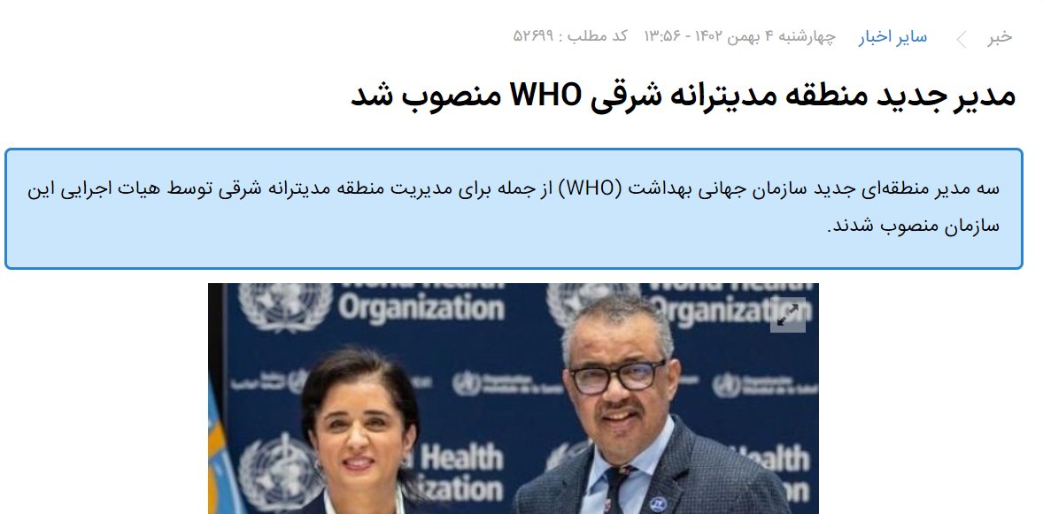 مدیر جدید منطقه مدیترانه شرقی WHO منصوب شد | فانا