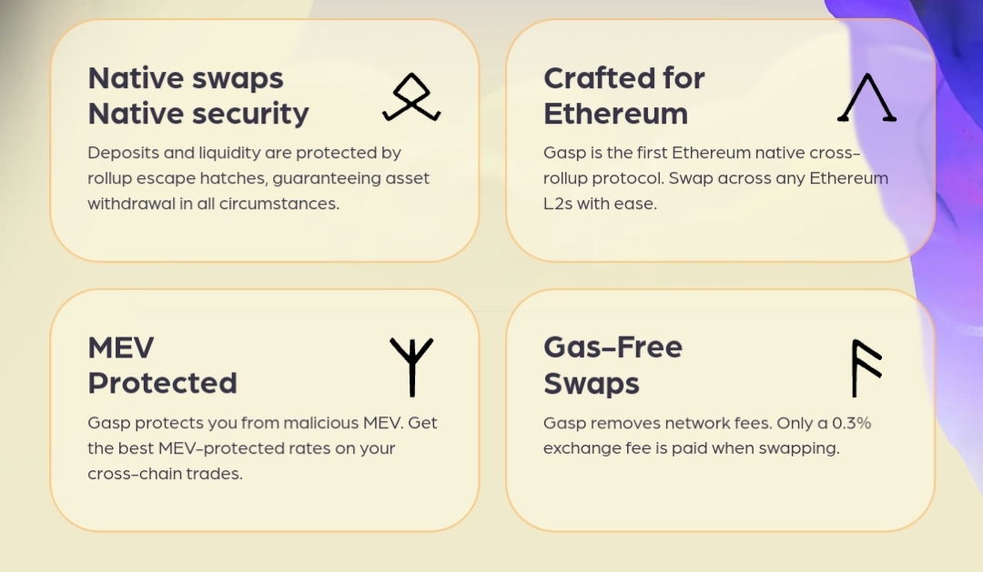 🔹 Gasp utilizes @eigenlayer for security and ZK proofs for cross-chain communication, allowing native swaps across major rollups like @0xPolygon, @arbitrum, and @Optimism.