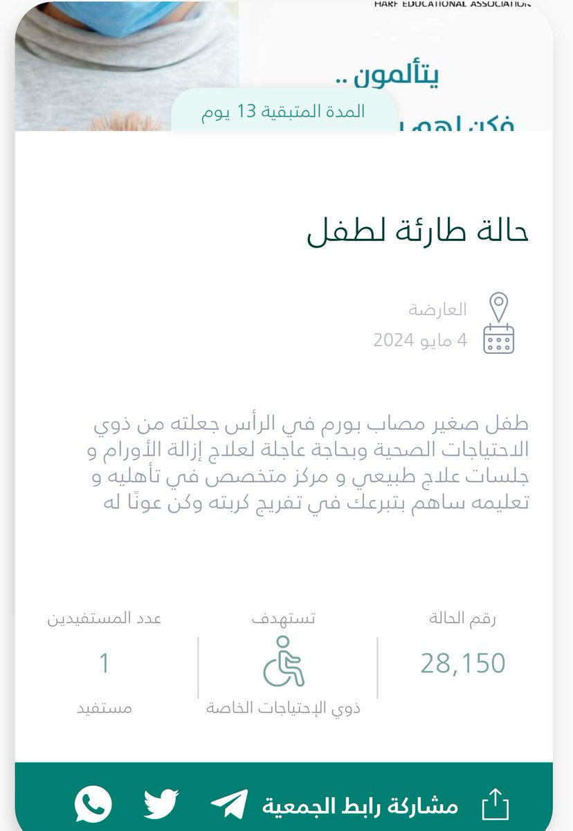 طفل صغير مصاب بورم في الرأس جعلته من ذوي الاحتياجات الصحية وبحاجة عاجلة لعلاج إزالة الأورام