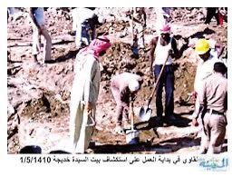 وكان السيد الرسول وهب هذه الدار لعقيل بن أبي طالب، فباعها ولده لمحمد بن يوسف الثقفي أخي الحجاج، فلما بنى داره المشهورة بدار ابن يوسف وكانت بجوارها أدخلها فيها، حتى اشترتها الخيزران أم الرشيد وفصلتها وبنتها على ما كانت عليه وجعلتها مسجداً، وهي باقية كذلك الى يومنا هذا). وقال محمد طاهر الكردي المكي في كتابه التاريخ القويم لمكة وبيت الله الكريم عام (1385هـ ـ جـ 1 ص 170): (إن موضع ولادة النبي صلى الله عليه وسلم بمكة بوسق الليل، وهو شعب علي قد بنيت فيه الآن عمارة لطيفة بناها أمين العاصمة الأسبق الشيخ عباس بن يوسف القطان الذي توفي في 16 رجب سنة ألف وثلاثمائة وسعبين هجرية رحمه الله رحمة الأبرار، فقد بناها على حسابه الخاص لتكون مكتبة عامة يتردد اليها العلماء والطلبة، وقد ابتدأ في عمارة هذه الدار قبل وفاته بشهرين، فلما مات أتمها إبنه الفاضل الشيخ أمين). ما تمّ من توثيق وأعمال حديثة: بقايا بيت السيدة خديجة المطمور حالياً بالرمال من الصور التاريخية والمراجعة السابقة، يظهر واضحاً أن المسجد الذي بنته الخيزران أم الخليفة هارون الرشيد بقي موجوداً حتى جاء الوقت المعاصر، ورأى بعض الثقاة والحريصين على التاريخ الثقافي المحلي بأن يحتفظ بأهم ما جاء بها، وكان على رأسهم الشيخ عباس قطان رحمه الله والذي استأذن الملك عبد العزيز بإقامة المكتبة الموجودة حالياً، وأن يجري الإحتفاظ بالمولد النبوي الشريف وبيت السيدة خديجة بحيث يطمر المكانان بالرمال لكي يحافظ عليهما ويبنى فوق سطح الأرض ما يؤكد مكانهما ويمنع الإخلال بالآثار والمباني القديمة. وفي هذا المضمار تم اكتشاف ما قد نفذه ذلك الشيخ الكريم من إضافة مباني مستحدثة فوق بيت السيدة خديجة رضي الله عنها والتي ظهرت في غور الأرض على عمق ثلاثة أمتار، سببها تواتر الأزمنة عليها، وظهر بوضوح أثناء الحفر والتنقيب بإشراف الدكتور سامي عنقاوي المتخصص في العمارة والآثار، بأن طريقة الشيخ القطان في البناء كانت هي الحفاظ على ما هو موجود من مباني وآثار وعند التعمق بالحفر في بعض الأماكن أثناء العمل ظهر بفضل الله بوضوح لا يدع مجالاً للشك بأن الطبقات التاريخية واضحة ابتداءً من الفترة العثمانية الى العباسية، بل وهناك ما يدل على قدم المكان الى ما قبل كل هذه الفترات السابقة، ويوجد توثيق لهذا التنقيب لمن يرغب في التأكد. تشير جغرافية موضع المكتبة الى انها شرق المسعى (جبلي الصفا والمروة) كما تمثل المكتبة نقطة على رأس مثلث متساوي الأضلاع رأسية الآخرين جبل الصفا وجبل المروة، وتقع المكتبة أيضاً في مقدمة شعب علي وعلى قدم سفح الجبل الأمين ـ جبل أبي قبيس ـ وتشرف على طريق شارع القشاشية، أمام مخرج نفق الطريق الدائري الأول أسفل جبل أبي قبيس. المشروع: بناء على المحددات الإيجابية السابقة لموضع المكتبة الحالي من الجوانب الجغرافية والإقتصادية والعمرانية نجد أن المحصلة النهائية تميل نحو تأكيد المزايا الثقافية والتراثية لهذا الشعب النبيل الذي نبع من خلاله أعظم دين سماوي، والتأكد أنه بالحفاظ على مثل هذه الأماكن ليس كمواضع فقط ولكن تكمن أهميتها فيما تحتويه من آثار تعتبر أدلة تاريخية هامة للسيرة النبوية الشريفية. ولهذا فإننا نرى العمل على الحفاظ على موضع المكتبة الحالي، وإذا كانت هناك ضرورة الى انشاء مكتبة حديثة فيكون إنشاؤها على هيئة مبنى يحيط بالمبنى الحالي من الجهات الأربع ويبعد عنه بمسافة لا تقل عن 15 متراً، ويبقى المبنى الحالي كفناء داخلي لا يمكن للجمهور الوصول إليه. والمبنى الموجود حالياً هناك له بديلان: إما إزالته بعناية شديدة وتحت إشراف مختصين وبدون المساس بما هو موجود من آثار قديمة من العهد النبوي الشريف؛ أو إبقائه في داخل فناء المبنى الحديث فيكون تسلسلاً تاريخياً متكاملاً من عهد النبوة الطاهرة الى عهد آل سعود الحالي. مصادر ومراجع: 1 ـ تاريخ الأمم والملوك ـ تاريخ الطبري: أبي جعفر محمد بن جرير الطبري (224-310هـ)، الجزء الثاني، تحقيق محمد أبو الفضل ابراهيم، دار سويدان، بي