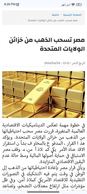 مصر طلبت رسميا من أمريكا بسحب كل إحتياطيها من الذهب اللي موجود فخزائن الولايات المتحدة الامريكية....