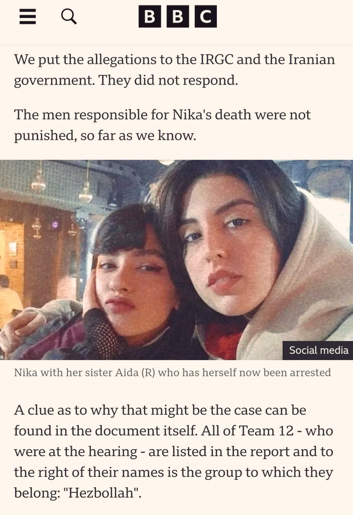 بیبیسی جهانی @BBCWorld یک گزارش مستند بسیار هولناک و نفسگیر در مورد نحوه دستگیری، جزییات انتقال و آزارجنسی، ضرب و شتم و در نهایت قتل #نیکا_شاکرمی و هویت افرادی که در این جنایت دخیل بودند رو منتشر کرده