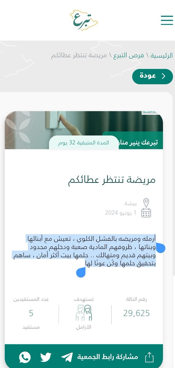 الحالة في منصة تبرع الوطنية