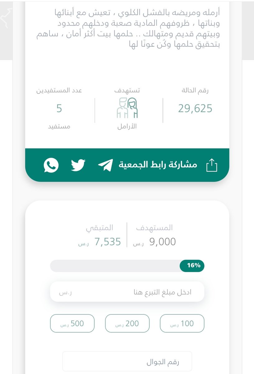 الحالة تحت اشراف جمعية ساعي بمنطقة مكة المكرمة