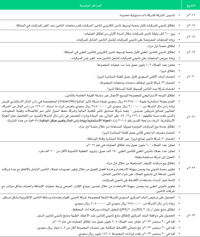تتمتع تأميني بمسار نمو ملحوظ في الحصة السوقية من التأمين على المركبات من 26.2% في عام 2019م إلى 36.5% في عام 2021م بقيادة علاقات قوية مع شركات التأمين والاستثمارات المستمرة في تعزيز التكنولوجيا ومكن الاعتماد الرقمي المتزايد في المملكة العربية السعودية تأميني من زيادة حصتها في سوق فئة الأفراد إلى 44.6% في عام 2022م ومن المتوقع أن تصل إلى %47.3 في عام 2023م.