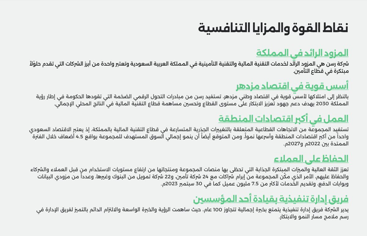 فرص النمو قدامها كبيرة جداً لو نوعت انشطتها ودخلت في مجال تقنية المعلومات وقطاعات جديدة للان تعتبر كشركة وساطة تأمين فقط وهو يشكل معظم الإيرادات 📊