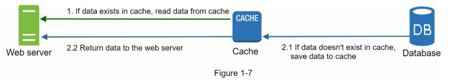 ولا نعمل لود عليها، هو ده حرفيًا افايدة الكاشينج، ف الي بيحصل في الصورة ان الويب سيرفر لما يجيله ريكويست هيروح يسأل الكاش، هل الداتا دي عندك؟ لو الكاش عنده الداتا دي هيرجعها للويب سيرفر يرجعها لليوزر، ولو لأ ف هيطلب من الداتا بيز الداتا دي ويحطها في الكاش ويرجعها لليوزر.