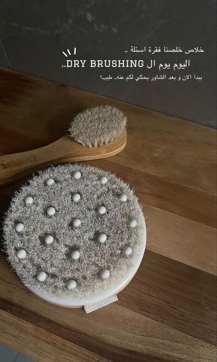 التقشير الجاف للبشرة ممتاز جداً اول ماتصحي من النوم سويها 5 دقايق ، بعدين رطبي جسمك كامل سوا بزيت اللوز يصير الجلد ناعم ، ويخفف علامات التمدد والمسام بالجسم اهم شيء نصيحة إنتبهي لاتسوينها في الليل ماراح تنامين من زود النشاط والطاقة الفرشاة تحصلونها بكل مكان .