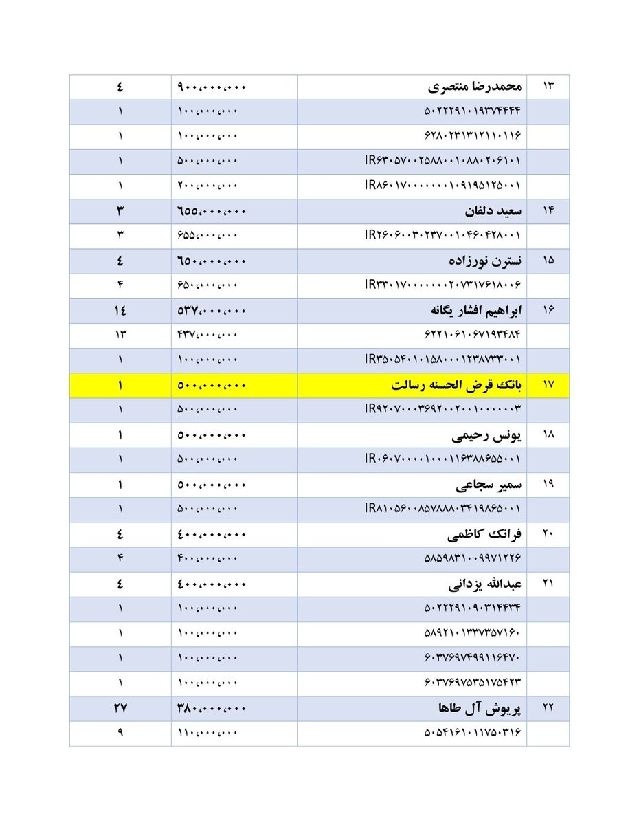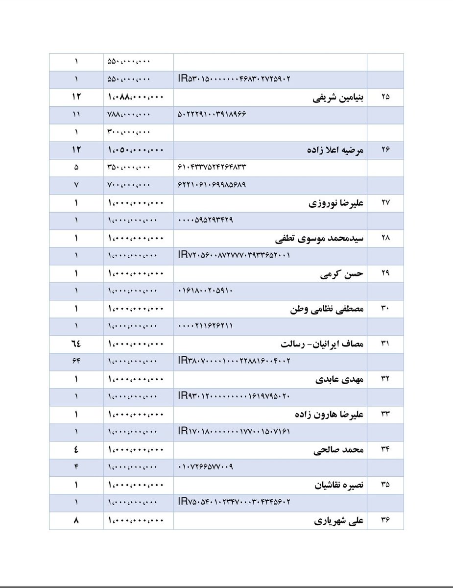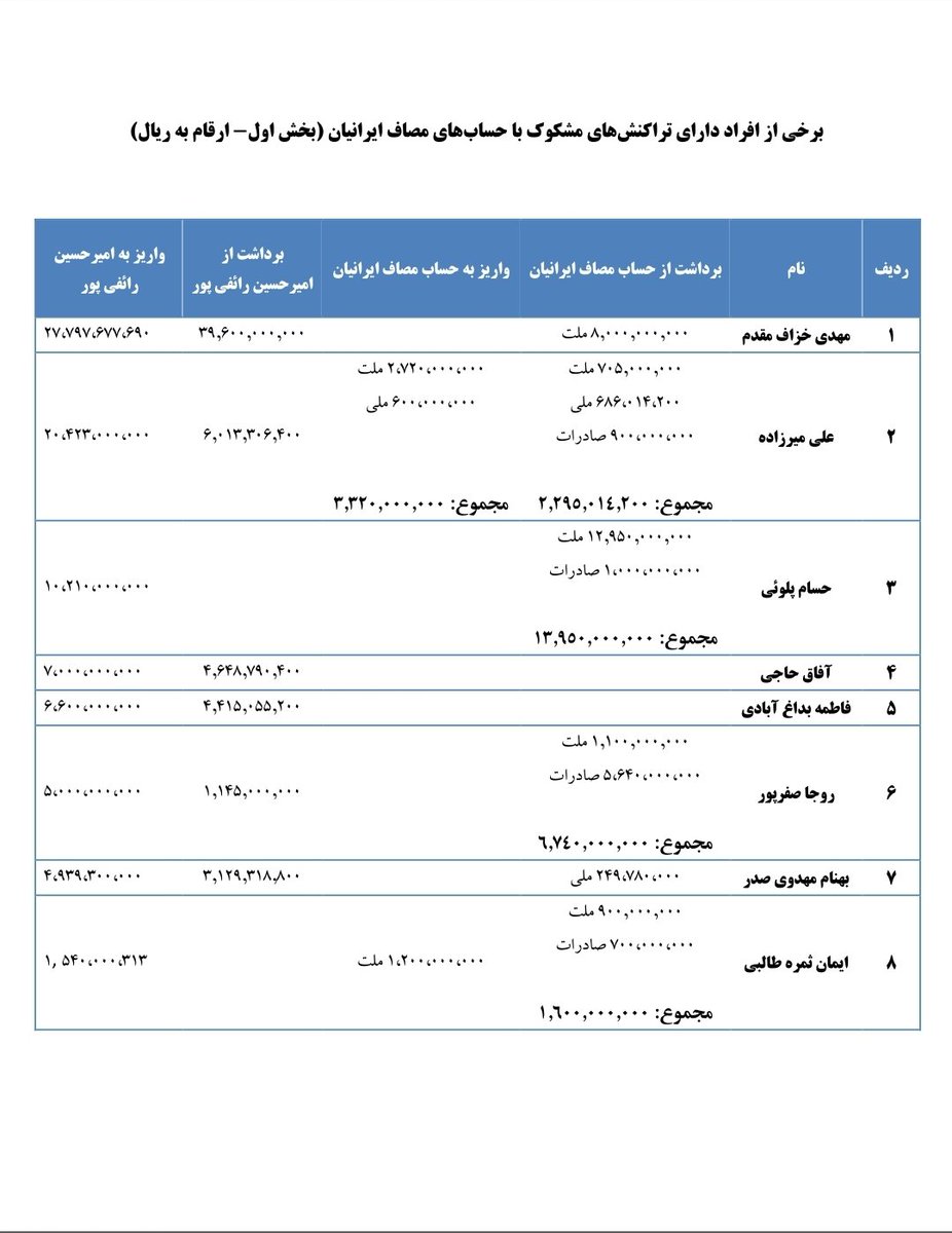 ۲۵- برخی از افراد با تراکنشهای مشکوک با حسابهای موسسه #مصاف رائفیپور