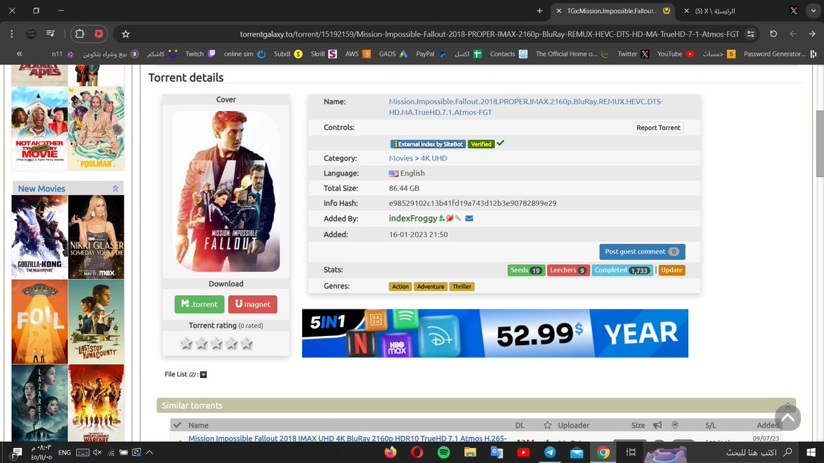 متوفر فيه معظم الأفلام المشهورة بجودة تحميل ممتازة 2160p/4K Blu-Ray x265 بمعدل Bitrate يتراوح مابين 6000 لـ 7000 KB/s من أصل 50000 لـ 65000 KB/s "الأصلي"
