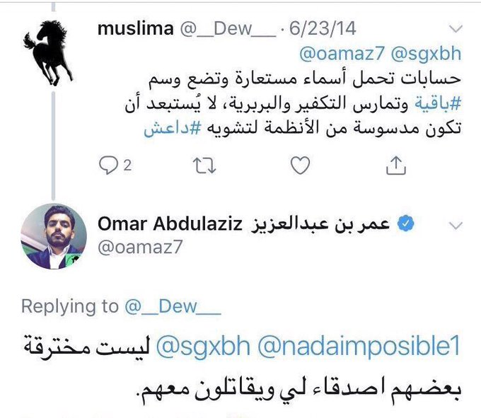 وكما يظهر الآن تخادم تنظيم القاعدة مع الحوثيين ميدانيًا ، يظهر لكم جميعًا كثرة حسابات الحوثيين والتنظيمات الإرهابية في النشر لحسابات الخونة – عبدالله العودة – يحيى عسيري – فسيان عبدالعزيز وغيرهم " أعزكم الله "