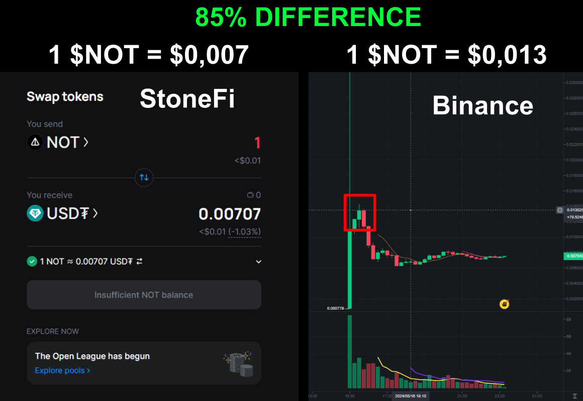 Next, when listings appeared, I noticed that prices between DEX and CEX were different.