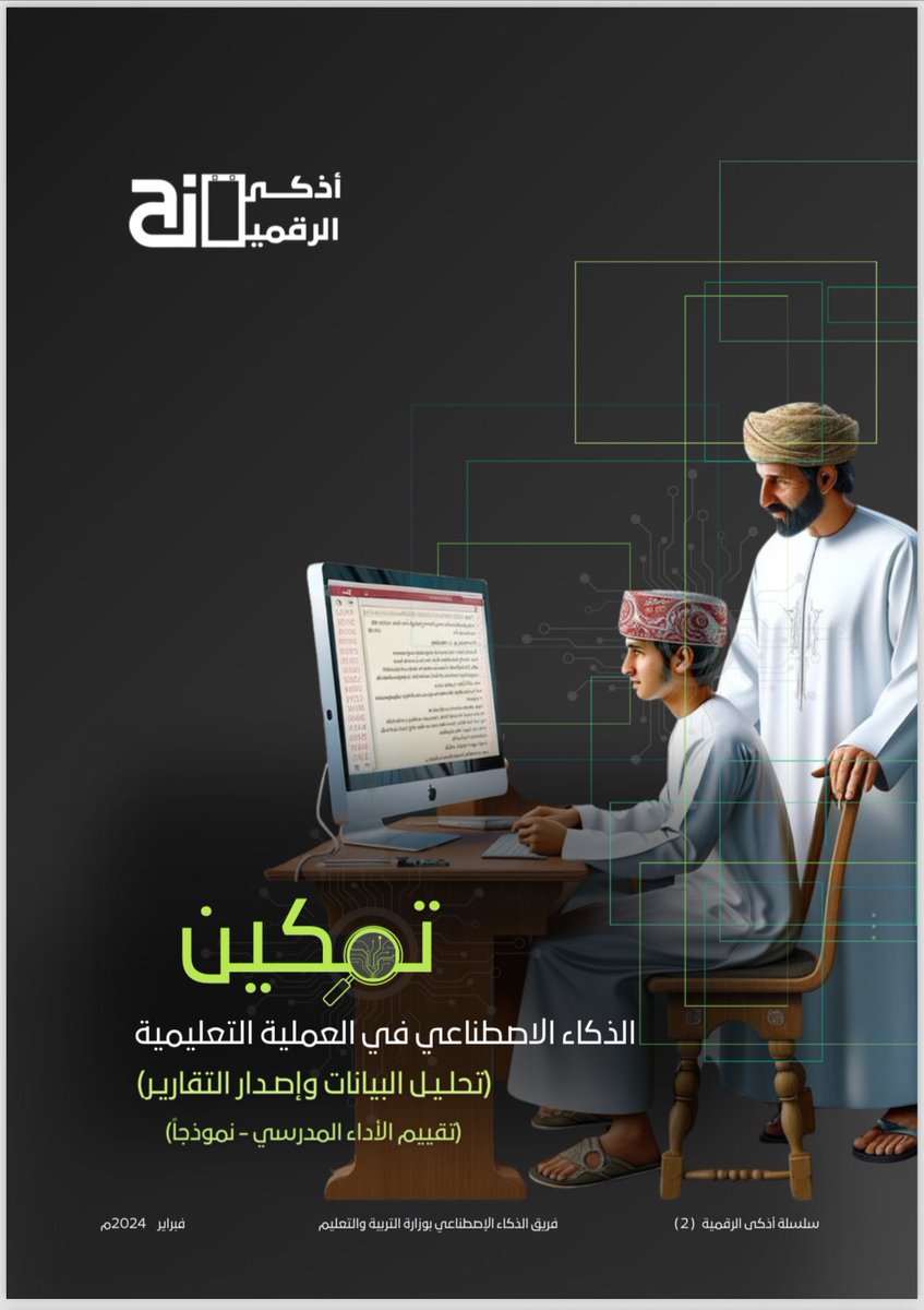 تأكيد نحو تمكين الذكاء الاصطناعي في العملية التعليمية تصدر المديرية العامة لتقنية المعلومات بـ @EduGovOman …العدد (5) من أذكى الرقمية تكاملاً مع الاعداد السابقة