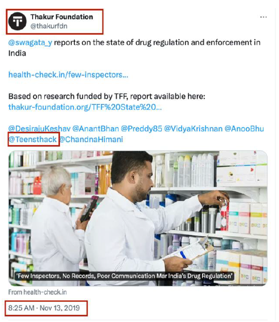 These connections, specific journo's involvement, big pharma agent, NGO, timings, and deletion of Dr. SSC Twitter account suggest a network influencing the narrative against India's self-reliant pharma approach, and motivated efforts to undermine Modi govt policies.