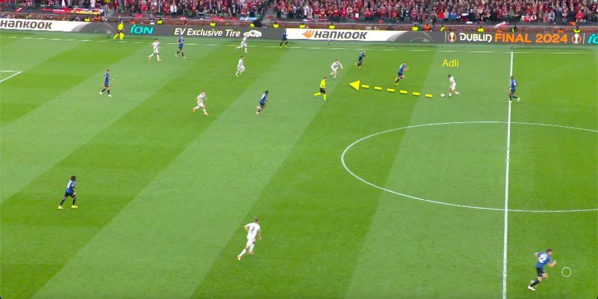 Pasalic (who came on for CDK) dropped to help the backline — winning the key duel vs Hincapie and starting the counterattack for Lookman’s hattrick.