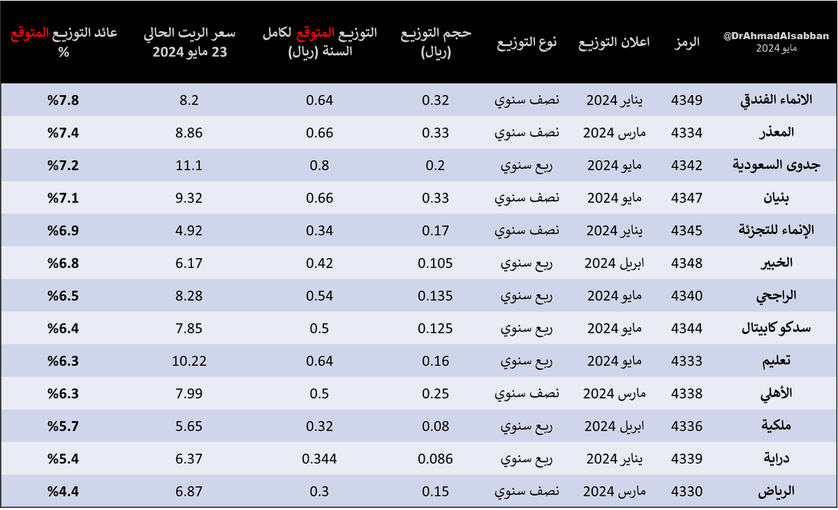 فيكون عائد التوزيع السنوي 7.8%