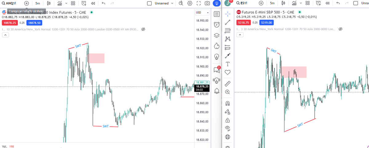 A estas divergencias en las estructuras les llamamos SMT y me indican un posible giro en el precio. ¿Significa esto que en cuanto tengo un SMT debo posicionarme en dirección contraria?... NO, significa que debo estar atento a posibles giros.