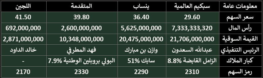 كل الشركات عندها خطط ومشاريع وتوسعات لكن تتفاوت من شركة الى اخرى في الحجم الأعلى قيمة المتقدمة ومن بعدها اللجين وسبكيم الثالثة واخيرأ ينساب الي عندها توسعة فقط.