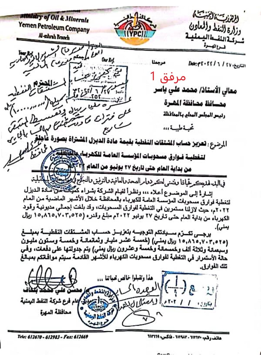 المشتقات النفطية التي تباع لمحافظةالمهرة عبر شركةالجوهرة