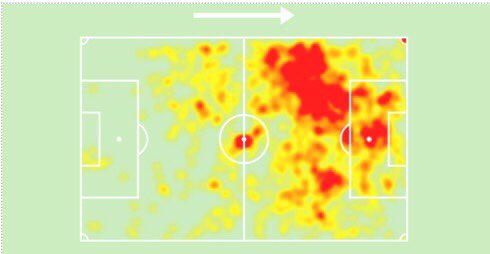 كان بنزيما (الصورة الثالثة، في الخريطة الحرارية لموسمه الأخير في ريال مدريد) مهاجما لديه ميل إلى الجمع بين مركزه 9 و التحرك على اليسار، مبابي هو مهاجم لديه ميل للبدء على اليسار.