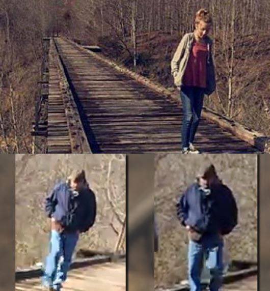 في أحد طرفي الجسر البداية، وفي الطرف الآخر، تكاد تكون نهاية مسدودة حيث يقع على الغابات. هناك بعض الممتلكات القريبة من نهاية الجسر، ولكن ليس من الواضح ما إذا شاهد أحد من أصحاب الممتلكات أي شيء في ذلك اليوم. حوالي الساعة 2:05 مساءً، قامت ليبي برفع هذه الصورة على سناب شات.