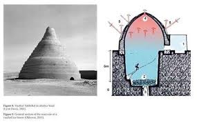 وقد كان الخيش ينصبُّ على قبة، ثم اتخذت بعد ذلك الشرائح، وانتشرت بين البيوت وكانت حراقات دجلة التي يستعملها رجال الدولة العباسية اللتي اشتهرت في العد العباسي يعد ويصنع فيها الثلج، ويعلق عليها الخيش المبلل بالماء،