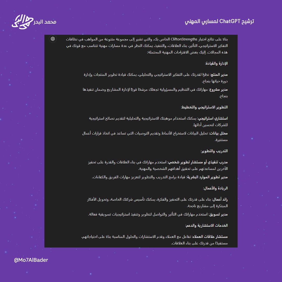 وقلت له ايش المسميات المناسبة لي لتكون نقطة او هدفي المهني القادم؟