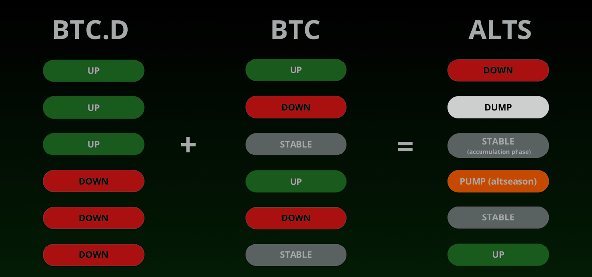 ➜ A comprehensive analysis of Bitcoin's dominance and its price can provide clues about the advisability of investing in altcoins.