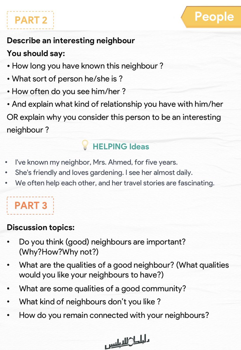 🗣 - أشهر الاسئلة المتوقعة باختبار المحادثة (IELTS) :