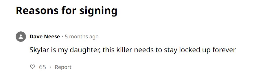 العجيب في الامر ان شيلا تركت رسالة مرعبة في تويتر (كتبت الرسالة عندما أعلن الشرطة عثورهم على بقايا سكايلر) موجود ليومنا هذا قالت فيها: في الوقع لقد فعلناها بعد العد لثلاثة. تم اعتقالها بعد شهر واحد من هذه الرسالة.