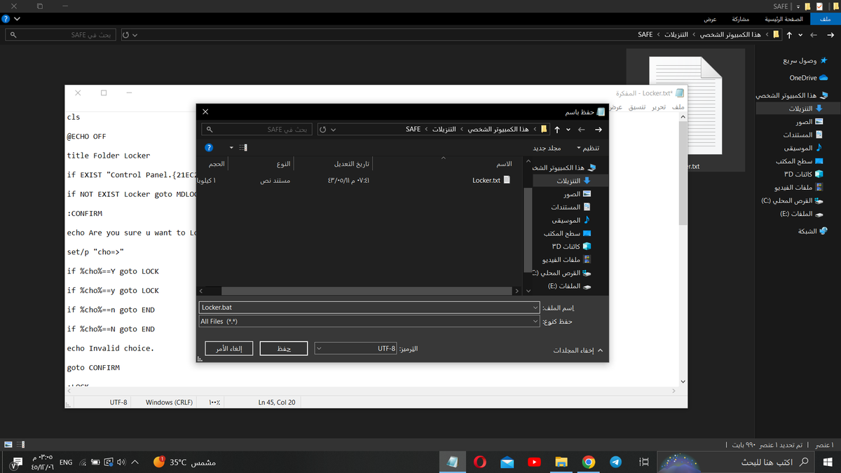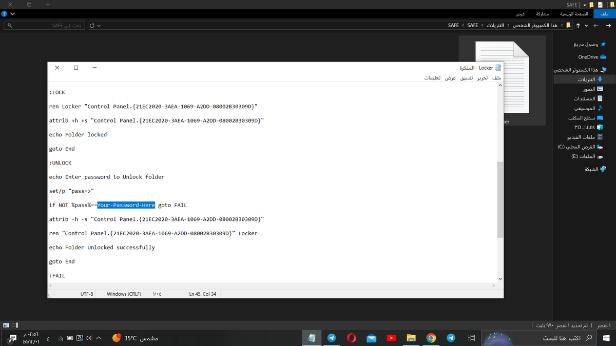 الخطوة الأولى بننشئ مجلد جديد وبنسميه باي اسم نبغاه على سبيل المثال "SAFE" او خزنة