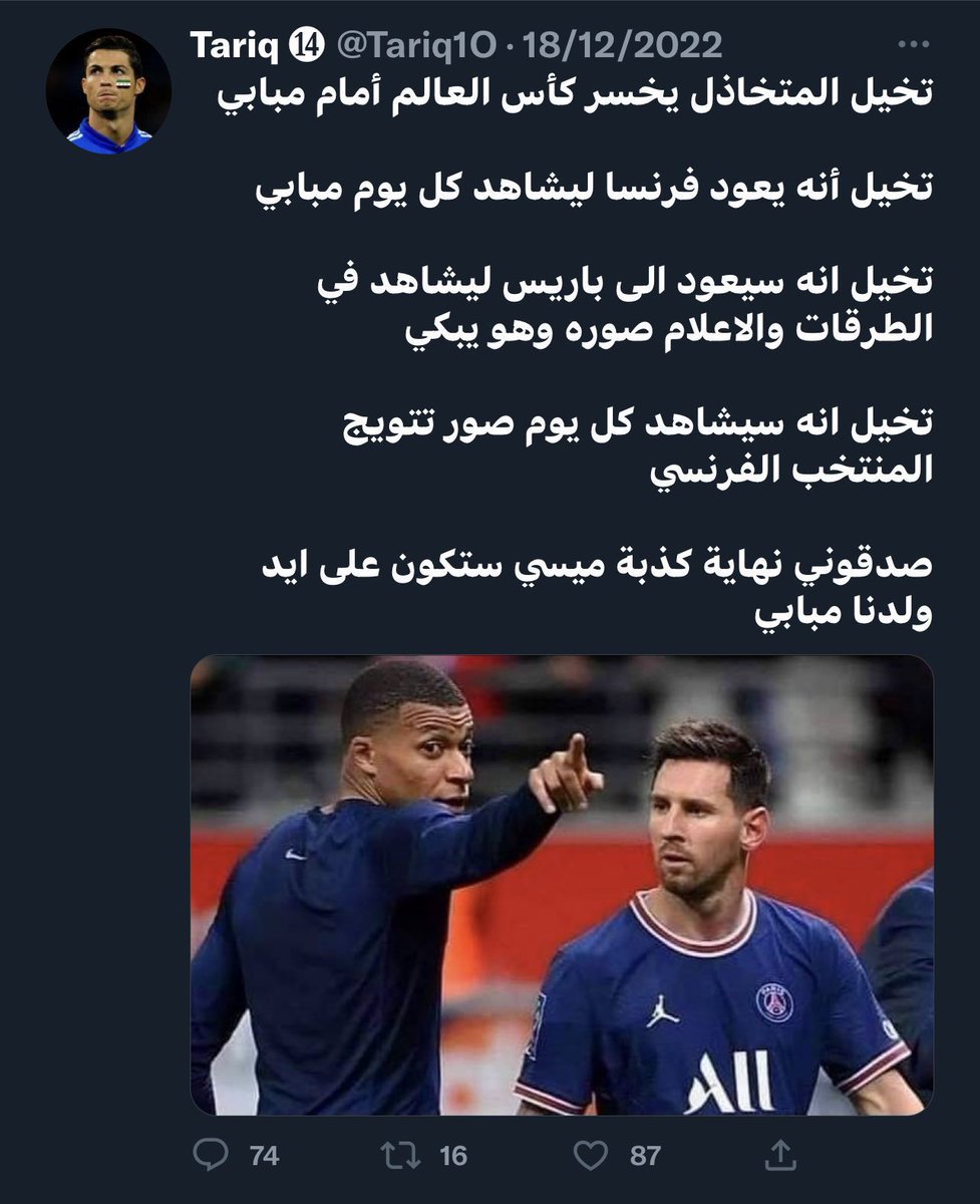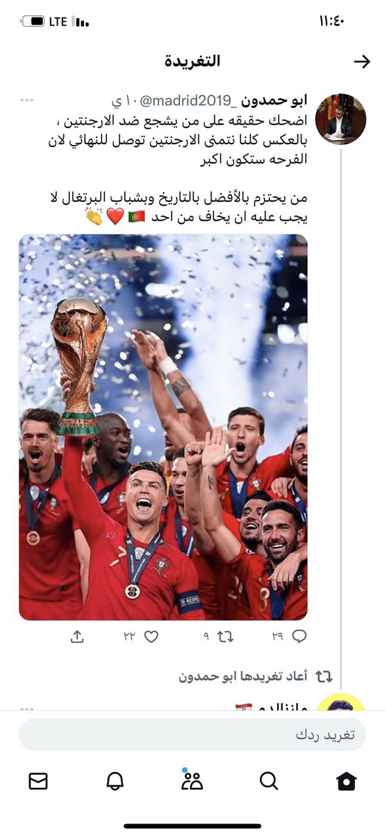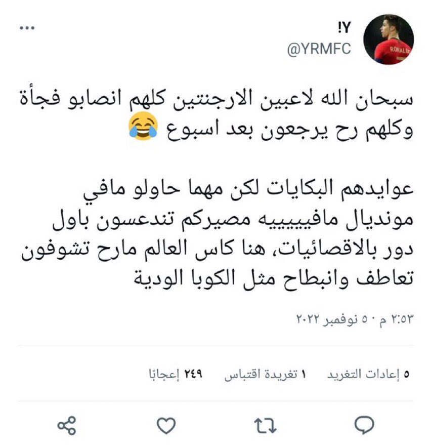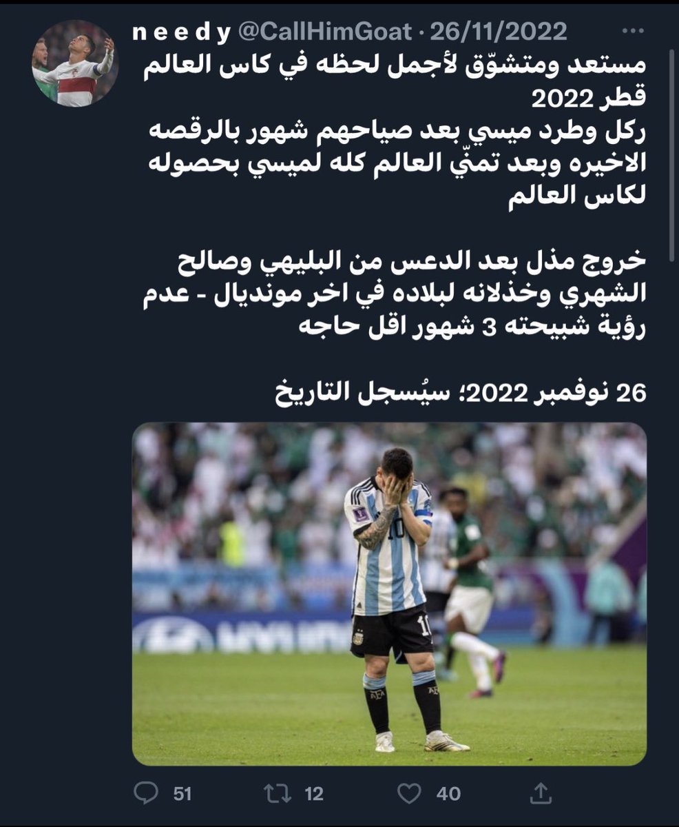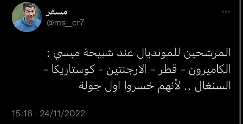بعدها فوز الارجنتين و خروج البرتغال من المغرب .. منتخب غير اوروبي قام بتعرية البرتغال تماما و هنا ظهرت تغريدات كثيرة ابرزها و بدأت بعض الاراء تخاف من تحقيق ميسي لكأس العالم :
