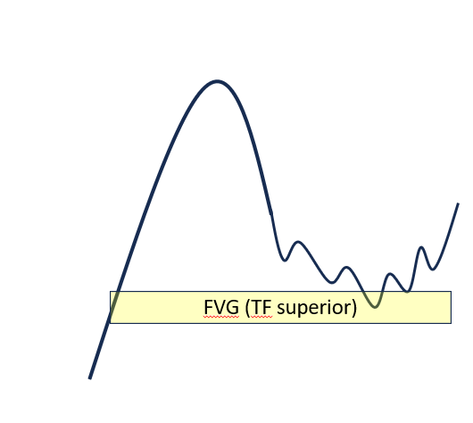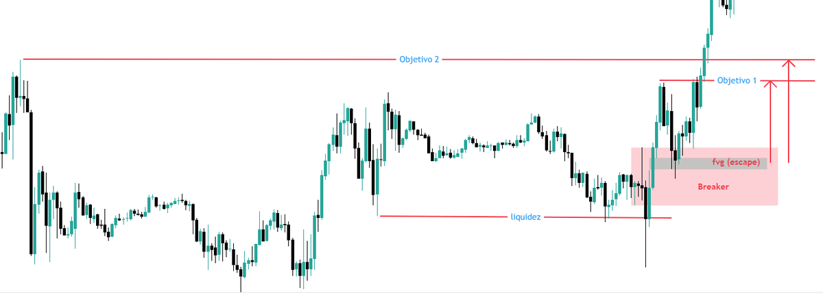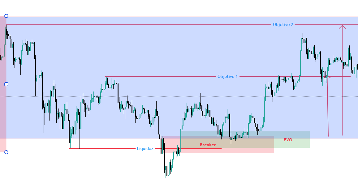 En esta entrada confluyen muchos conceptos de ICT y eso es lo que la hace tan potente. Trabajaremos con el modelo alcista, el bajista es el mismo reversando las velas.