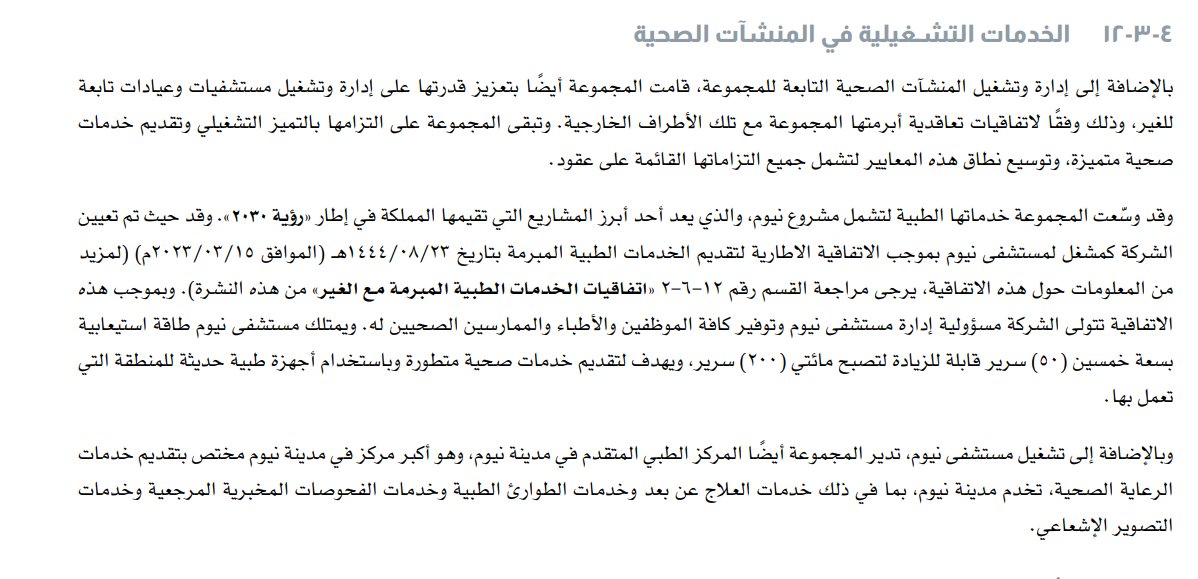 المستشفى لا يزال يحقق خسائر ومن المتوقع الوصول الى نقطة التعادل في نهاية 2024 والدخول في الربحية 2025.